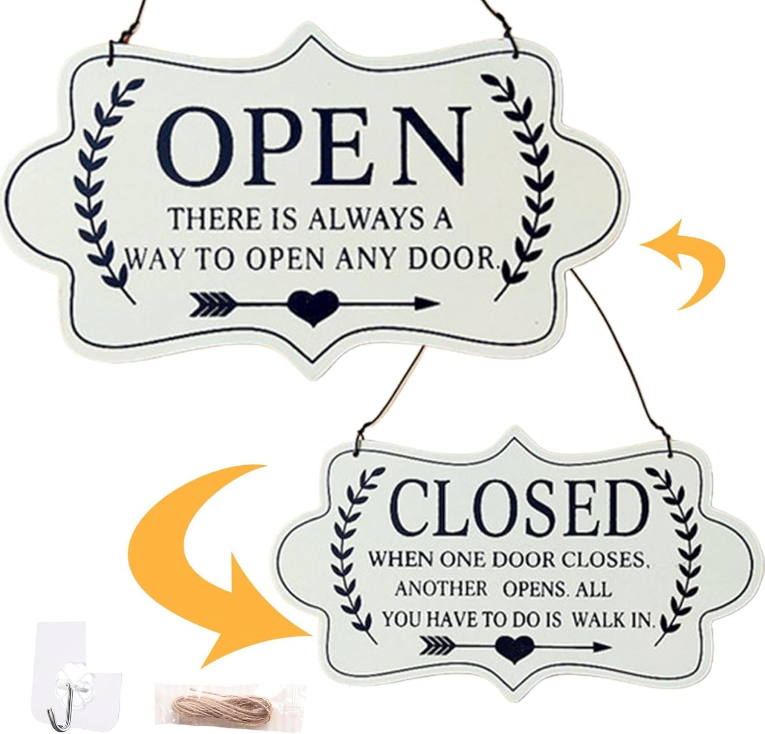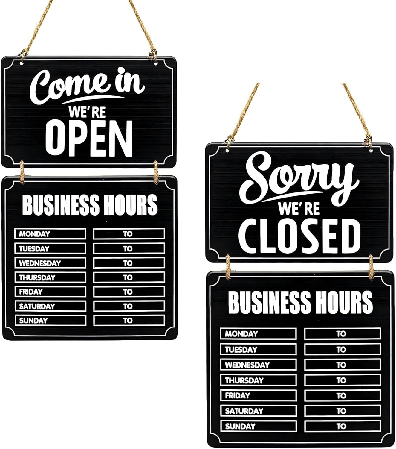 Open Sign for Business with Hours - Hanging Schedule Sign with Rope | Writable Open and Closed Sign for Store, Office, Restaurant, Living Room, Cafe or Display