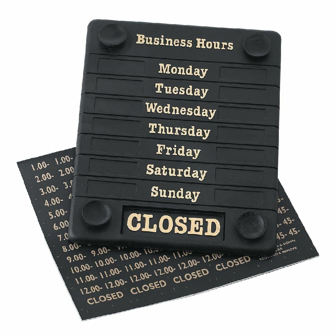 Hours of Business sign open / closed display mon - sun cafe pub black gold