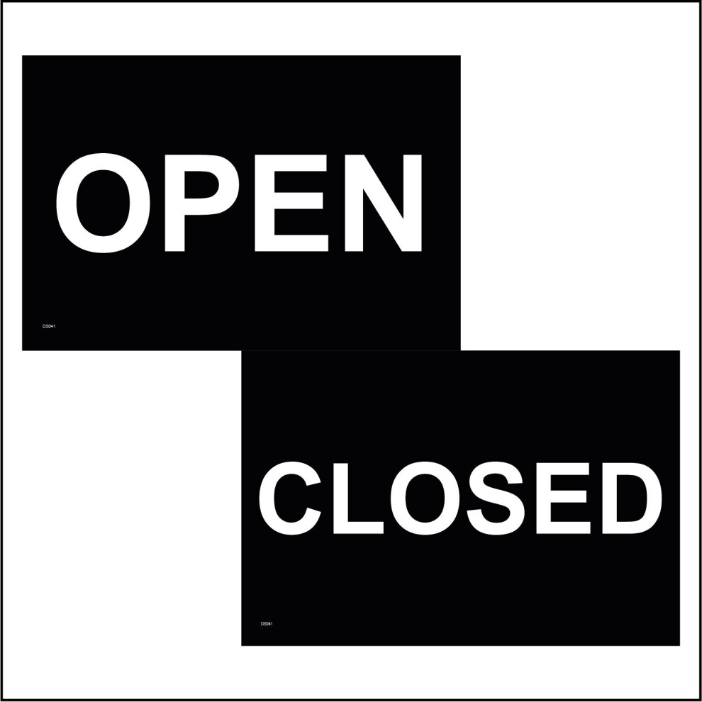 (300 x 200mm - 12 x 8, A - Sticker / Sav - Non-See Through) DS041 Double Sided White & Black Open Closed Sign