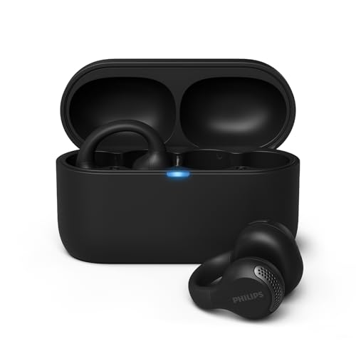 Philips TAQ2000BK Ear Cuff Style True Wireless Open Ear Multipoint Bluetooth Earbuds - 28 Hours Playtime, Pocket-sized charging case, Clear calls, Ideal for commuting and exercise - Black