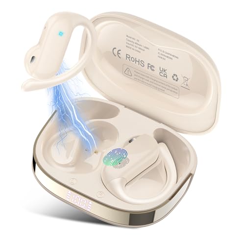 Open Ear Earbuds, Bluetooth 5.4 Wireless Earbuds with Ear Hooks, 32H HiFi Stereo Open Ear Headphones with Clear Calls, IPX7 Waterproof Lightweight Sport Earphones for Workouts, Running, Gym, Bee White
