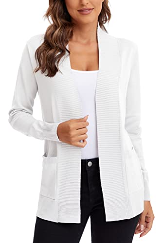 Urban CoCo Women's Lightweight Open Front Knit Cardigan Sweater Long Sleeve with Pocket, White, Medium