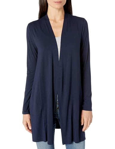Amazon Essentials Women's Relaxed Fit Long-Line Soft Stretch Jersey Knit Open-Front Cardigan, Navy, XL