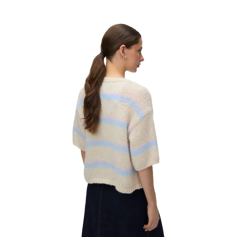 Objluna L/S Re Open Knit Cardigan Noos, White Sand, M