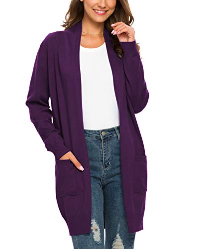 PCEAIIH Women's Long Sleeve Open Front Knit Cardigan Sweaters with Pockets (M, Purple)