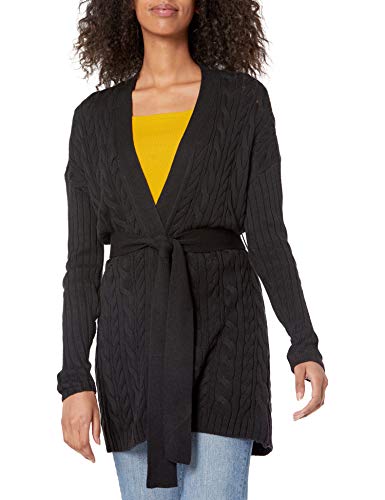 Amazon Essentials Women's Longline Cable Knit Open-Front Cardigan, Black, XS