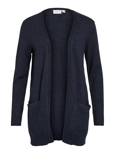 VILA CLOTHES Women's Viril L/s Open Knit Cardigan-noos Cardigan, Blue (Total Eclipse Detail: Melange), 14 (Manufacturer size: Large)