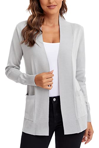 Urban CoCo Women's Open Front Knit Cardigan Casual Long Sleeve Pocket Sweater, Light Gray, Large