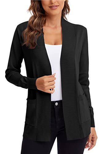 Womens Black Solid Cardigan Long Sleeve Open Front Ribbed Knit Cardigan Soft Knitted Jacket Black M