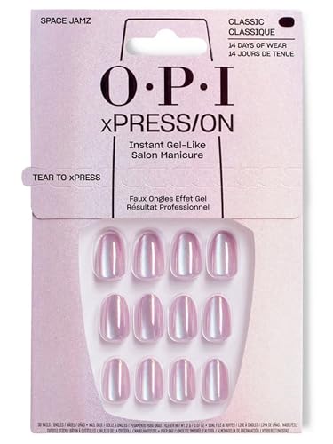 OPI xPRESS-ON Space Jamz - Sparkling Pink Short and Round Shaped Press On Nails - With Nail Glue - Long Lasting, Reusable and Non-Damaging False Nails