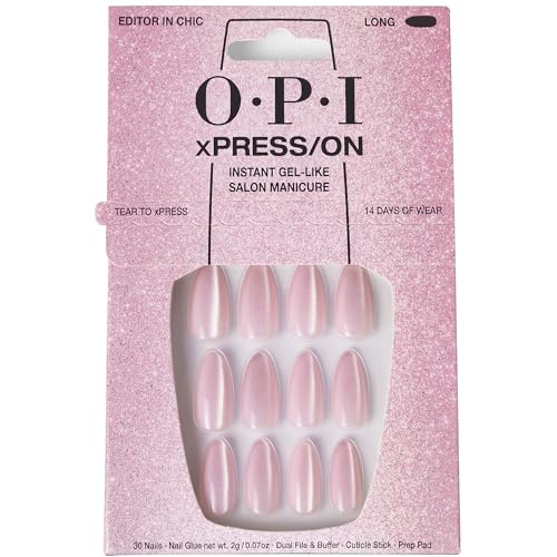 OPI xPRESS-ON Editor in Chic - Baby Pink Velvet Long and Almond Shaped Press On Nails - With Nail Glue - Long Lasting, Reusable and Non-Damaging False Nails