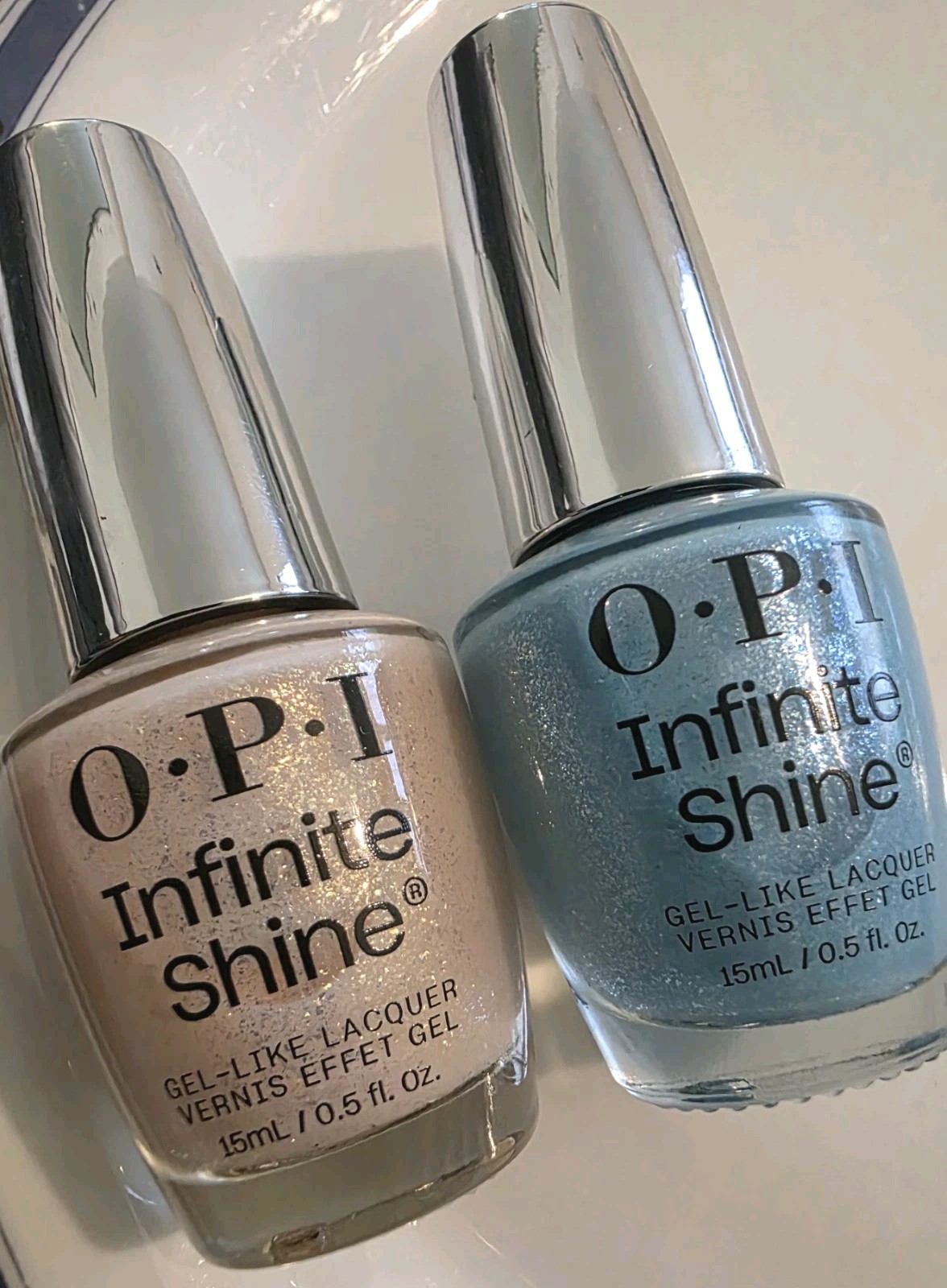 OPI Infinite Shine Living The Fanta-Sea 4204 Blue+ SLAY AWHILE 4201 (Light Pink)