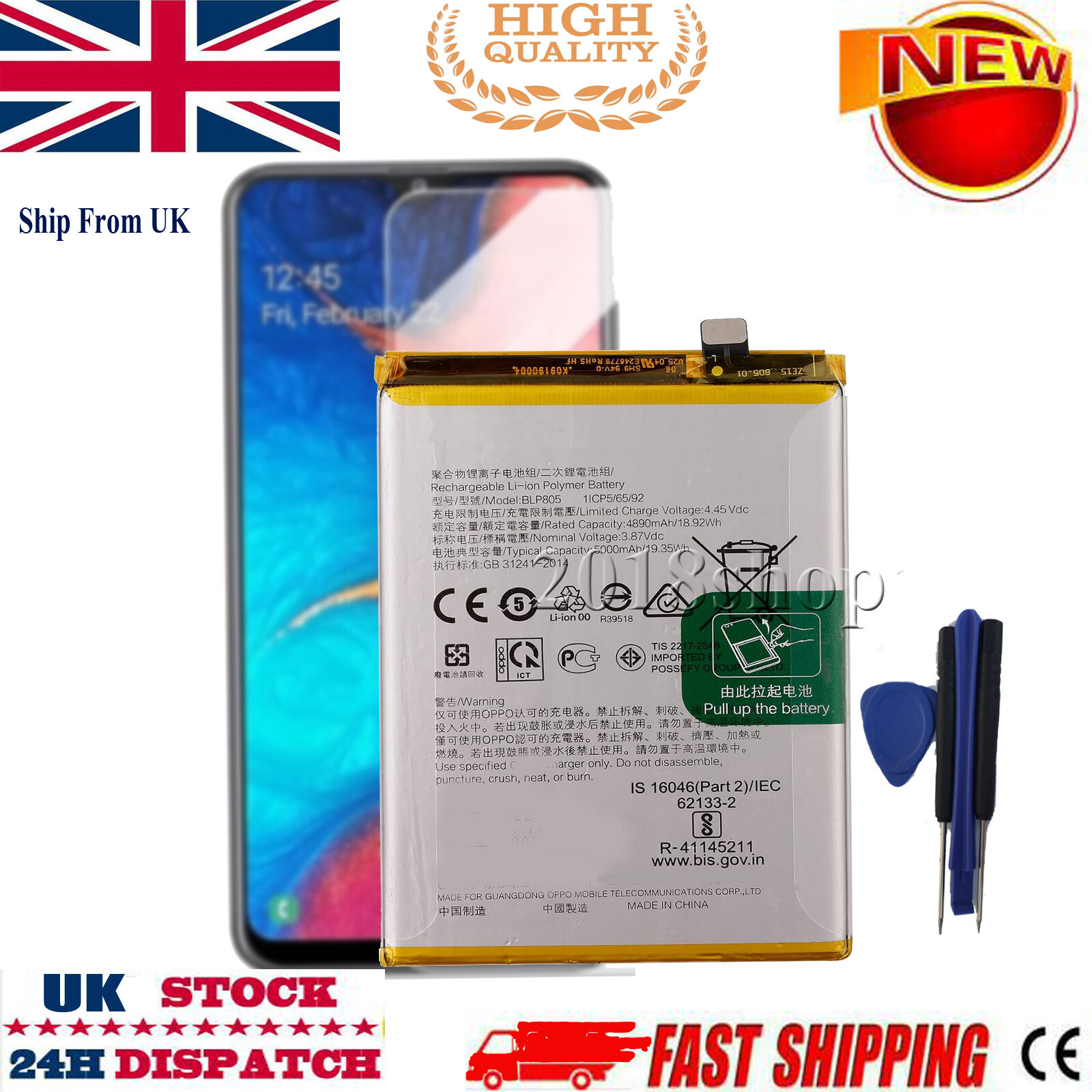 BLP805 5000mAh Battery for Oppo A16s CPH2271 + tools