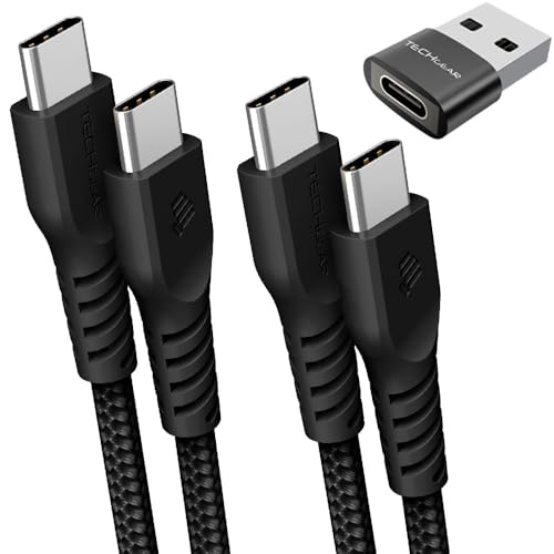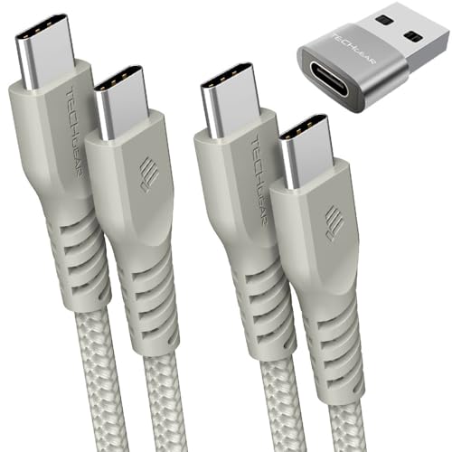 TECHGEAR USB C to USB C Charger Cable 60W (1M+2M+Adapter) Strong Braided Fast Charging Type C Data Lead for iPhone 17 16 15 Pro Max, iPad Air/Pro/A16/10th, Samsung S26 S25 S24 A54 A16, Pixel, Oppo etc