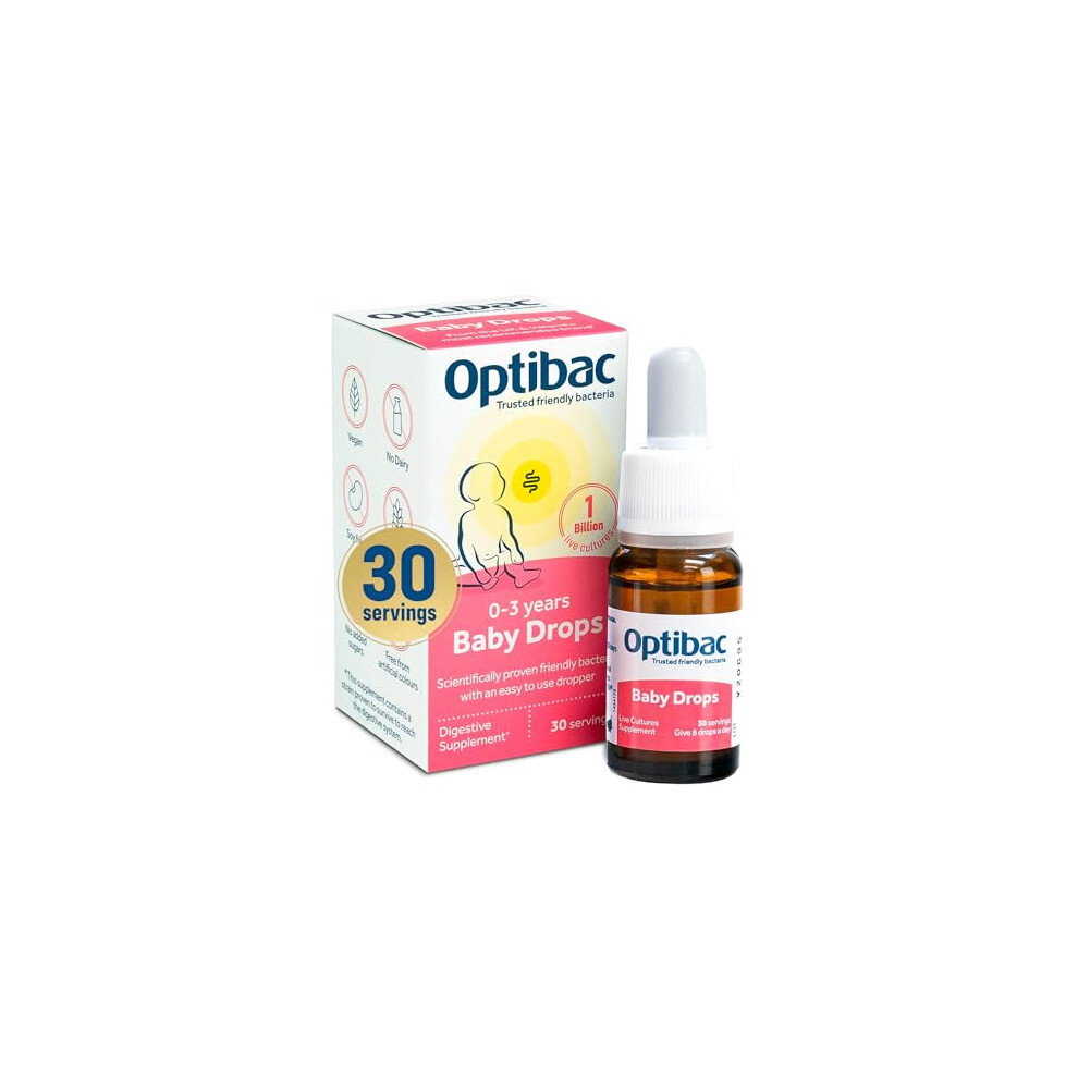 Optibac Probiotics Baby Drops 10ml - Vegan Digestive Probiotic Supplement for Newborns, Babies & Infants with 1 Billion Bacterial Cultures - 30 Day S
