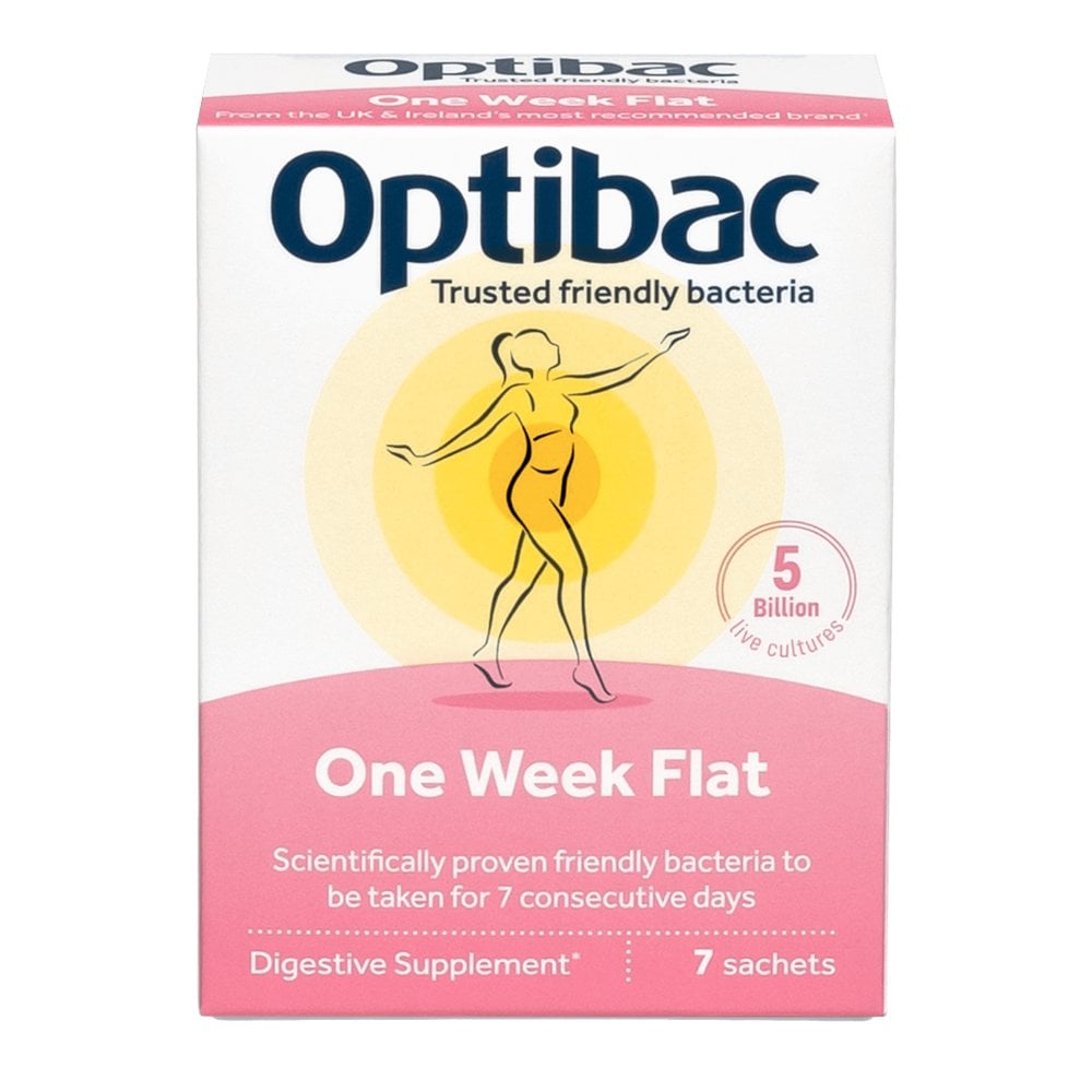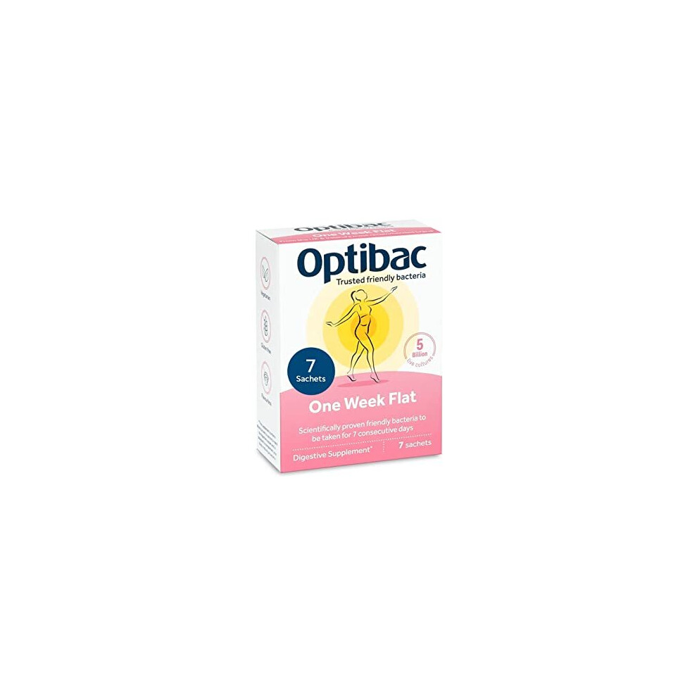 Optibac Probiotics One Week Flat - Vegan Digestive Probiotic Supplement - Suitable for Bloating as Gluten Free - Most Trusted & Recommended Brand - 1 Week Supply, 7 Sachets