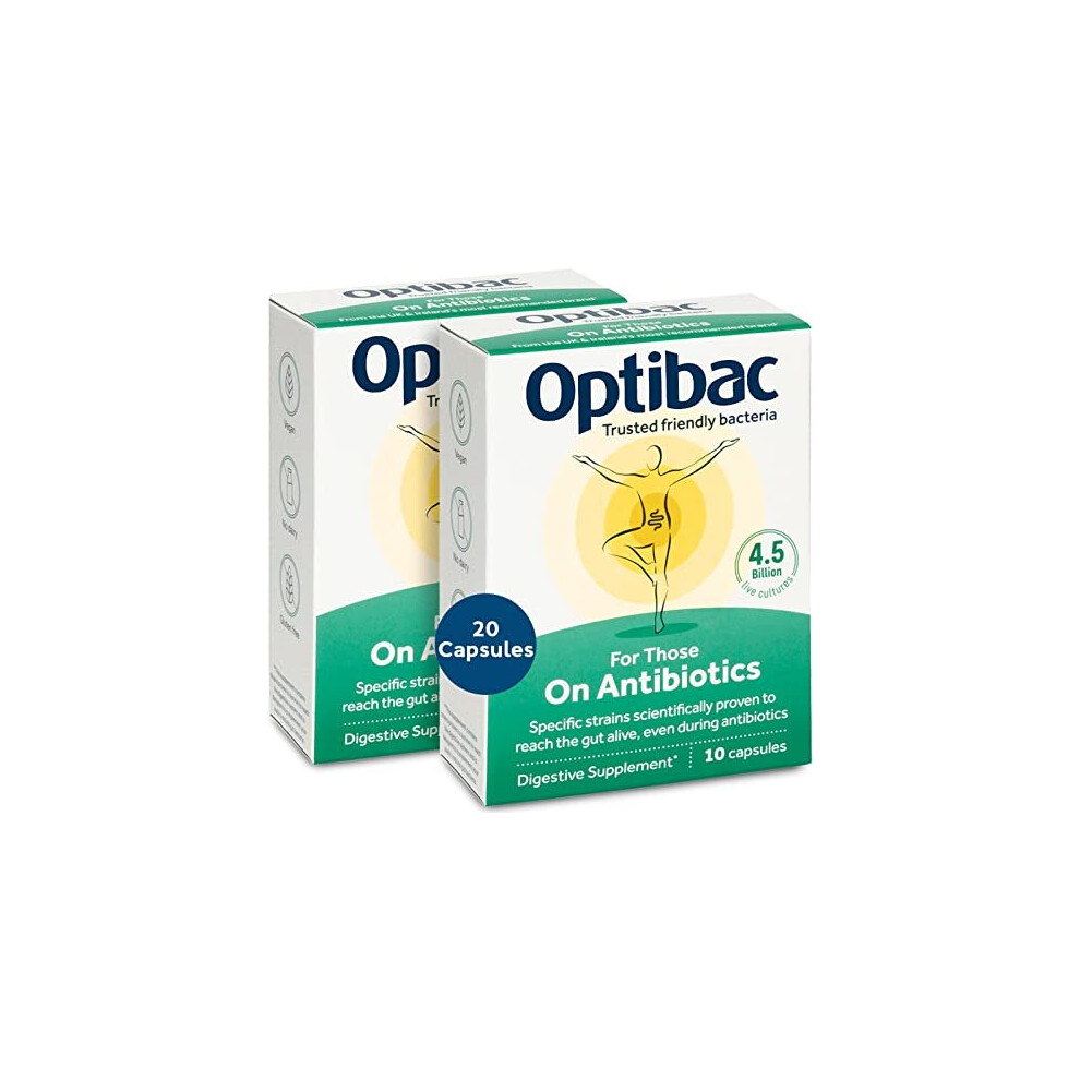 Optibac Probiotics for Those on Antibiotics - Vegan Digestive Probiotic Supplement with 4.5 Billion Bacterial Cultures - 20 Capsules
