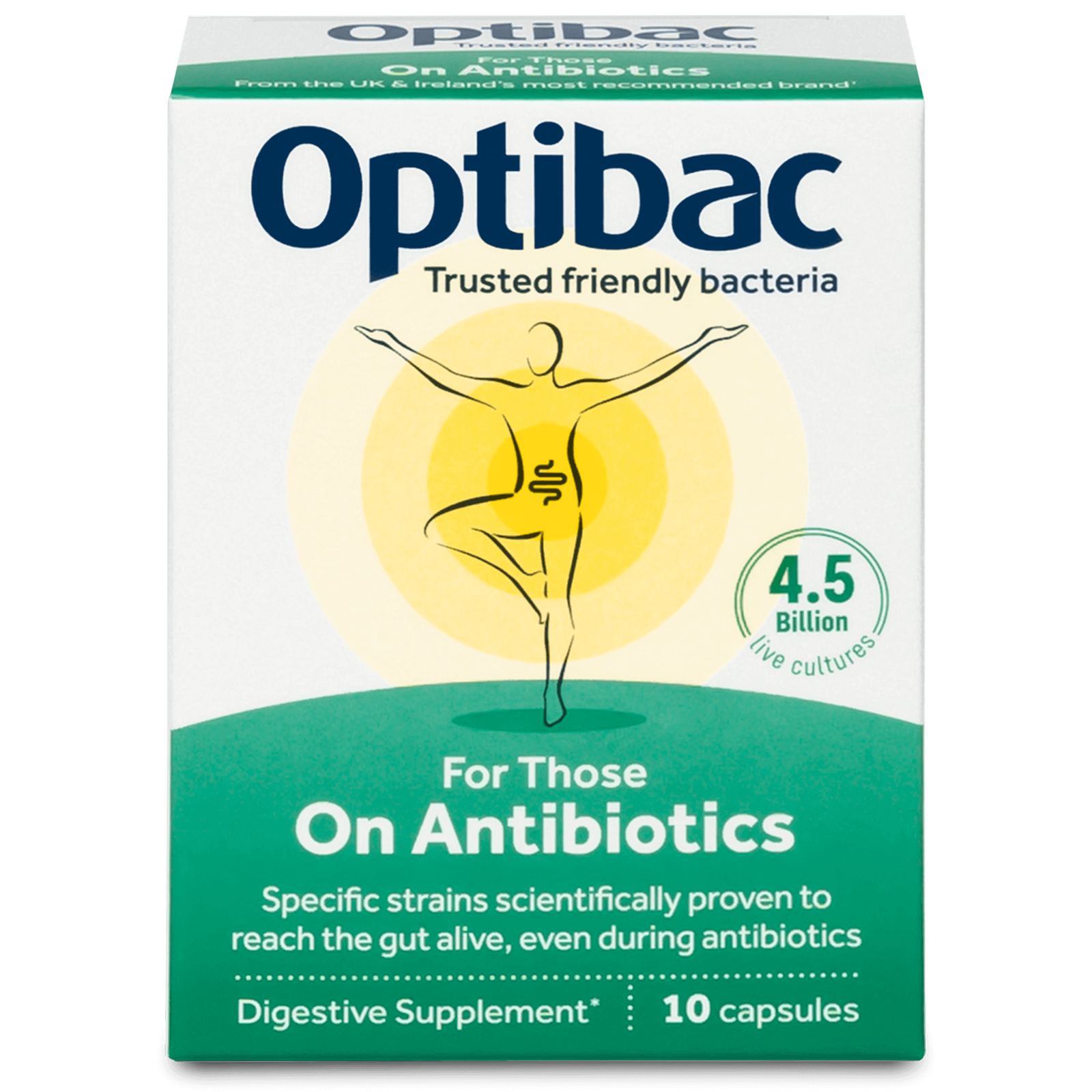 Optibac Probiotics for Those On Antibiotics - Vegan Digestive Probiotic Supplement - Lactobacillus Specifically Researched Alongside Antibiotics - Most Trusted & Recommended Brand - 10 Capsules