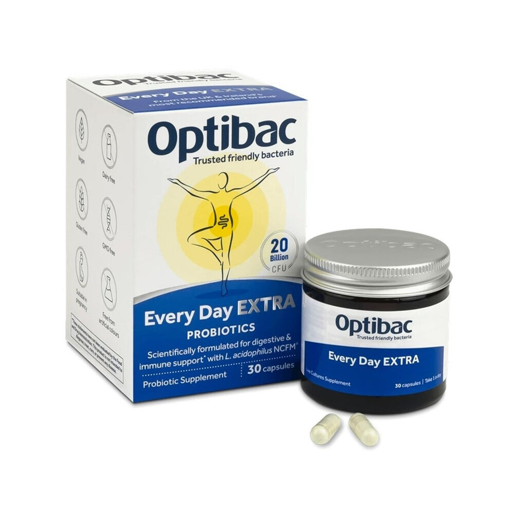 Optibac Every Day Extra Probiotic Capsules for Digestive & Immune Support 30 Capsules |High-Strength Probiotics |Daily Supplement for Gut Health