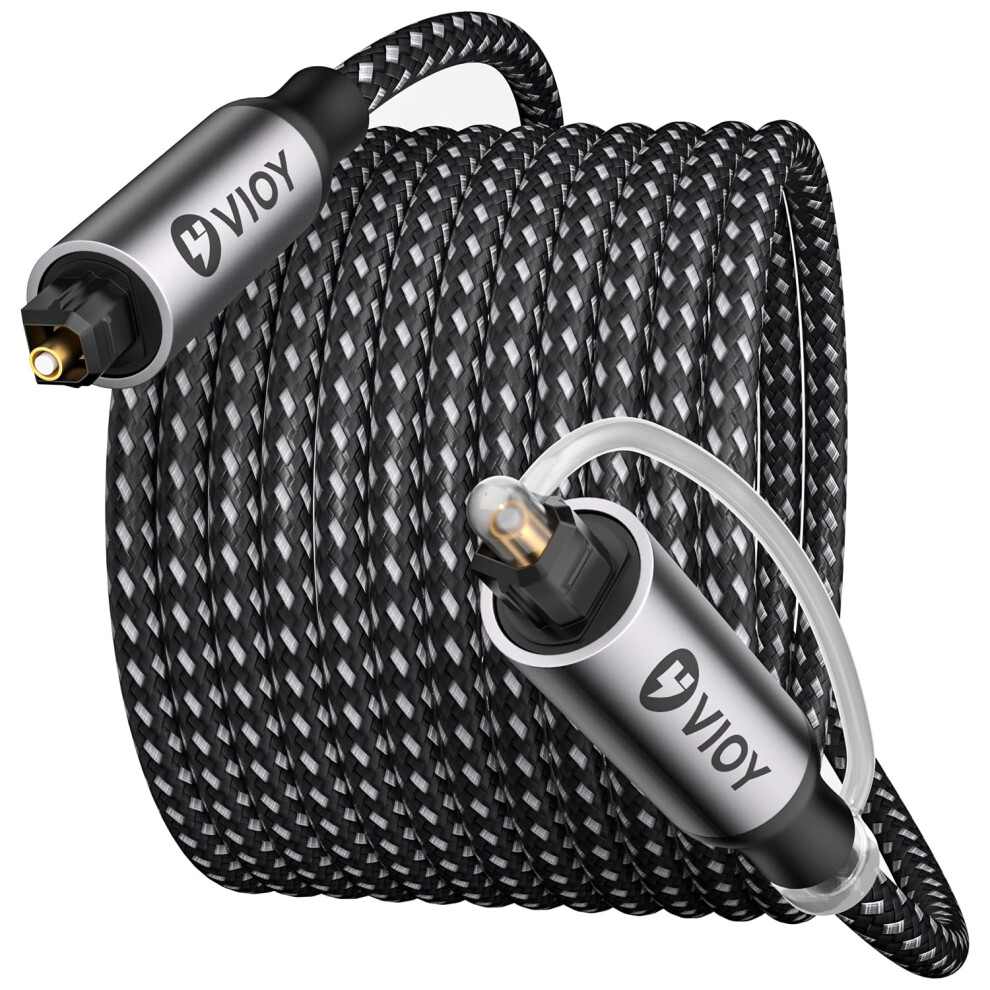 VIOY Optical Audio Cable 8M, Long Digital Fiber Optic Audio Cable, Braided S/PDIF Adat Optical Cord for Soundbar, TV, Amplifier, Home Cinema, Stereo