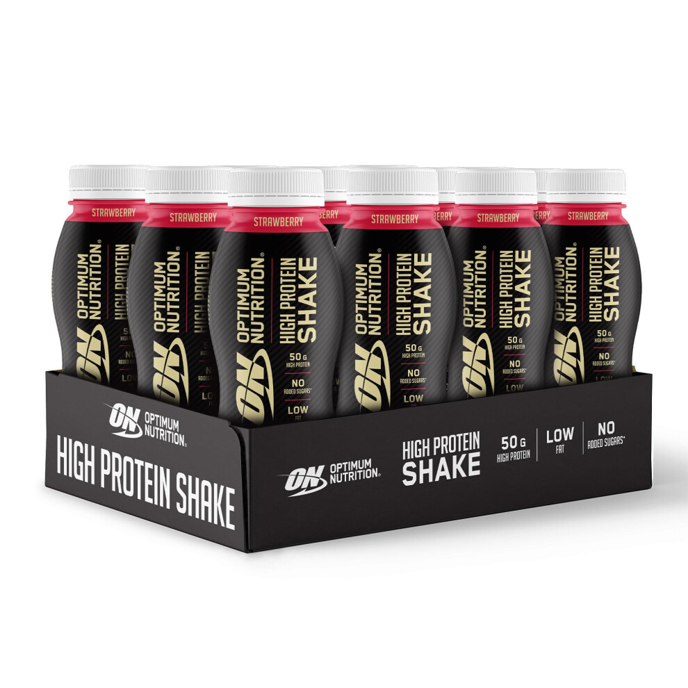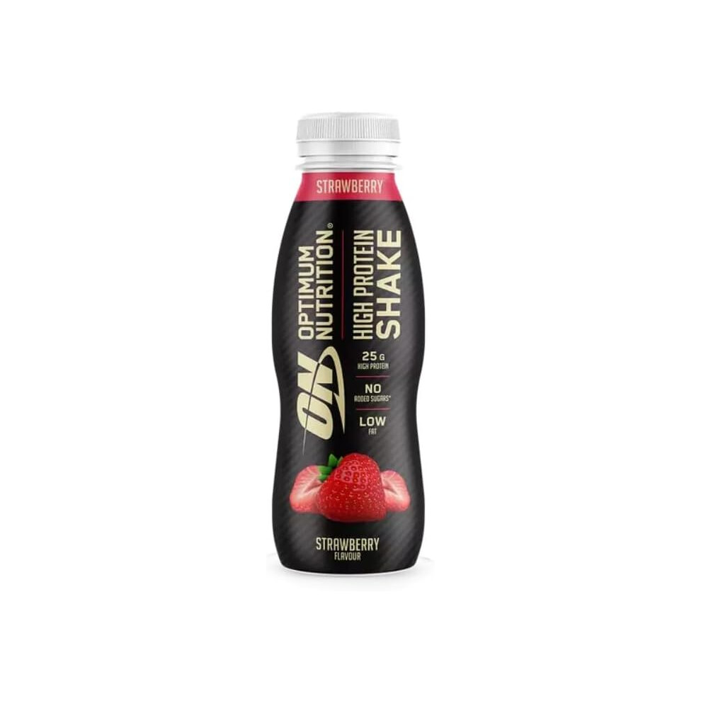 ON High Protein Shake Bottles, Ready To Drink Healthy Snacks, No added sugars, low fat, Post Workout Snack for Men and Women, Strawberry Flavour, 12x
