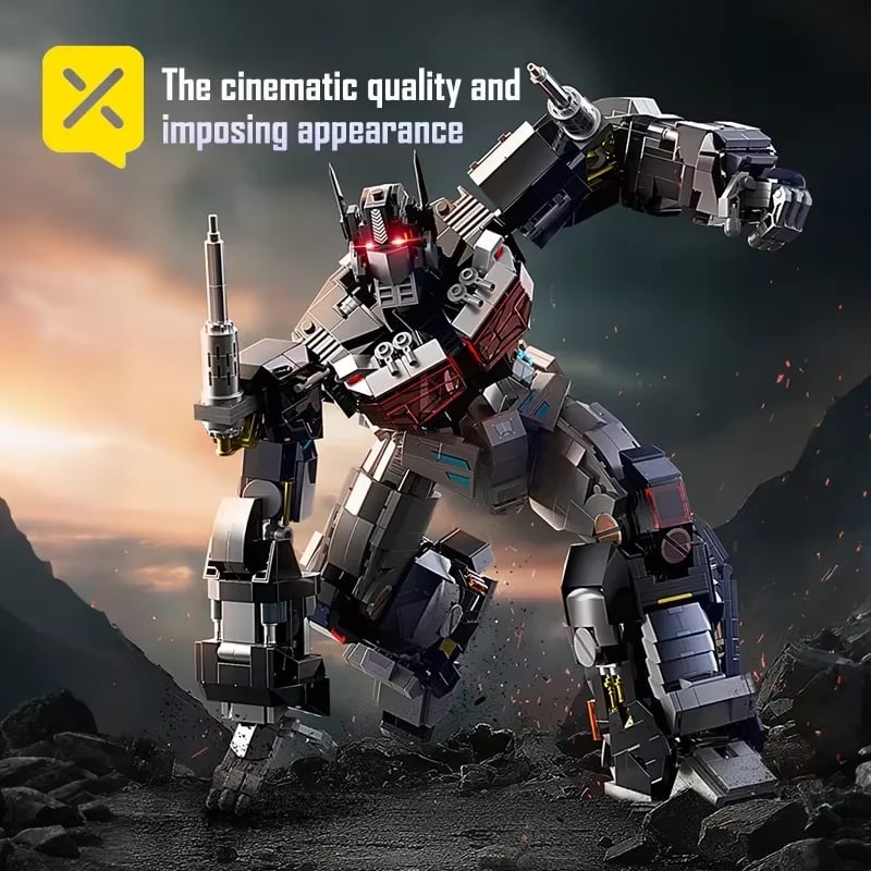 Optimus Prime Knight Transformer Robot Building Blocks Adult Collectible LED Light Deformation Toy Action Figure Model Kit Gifts