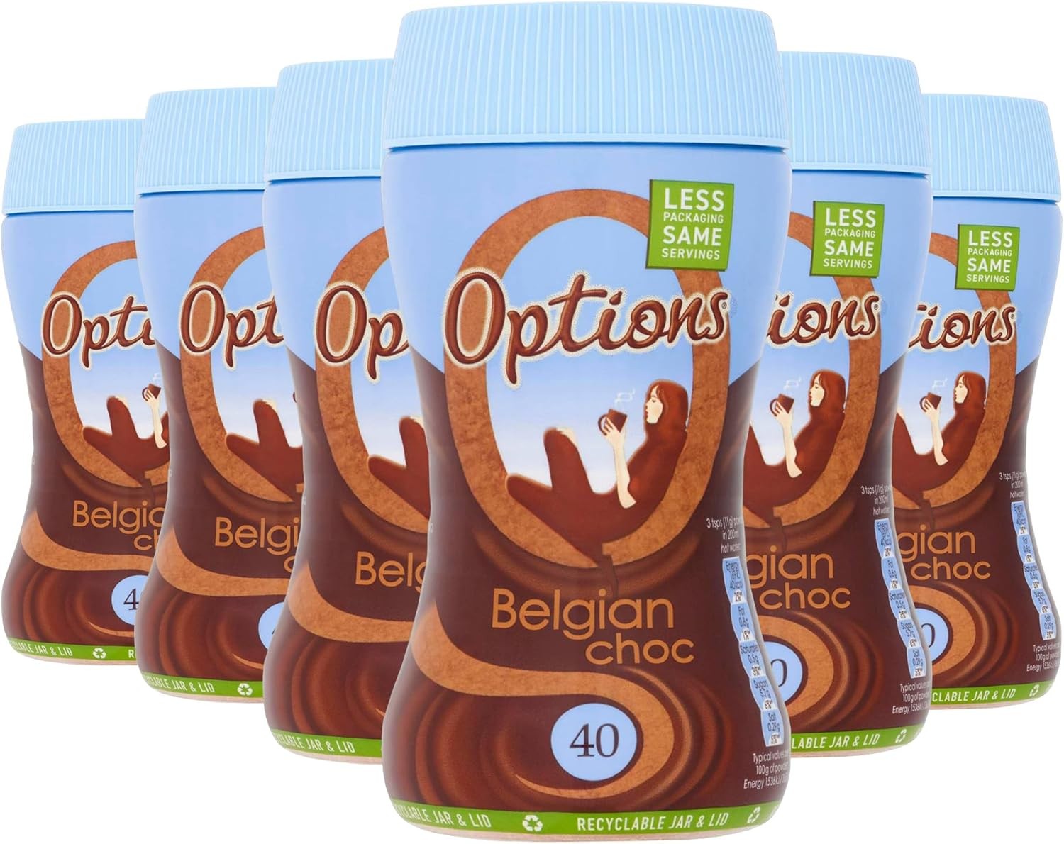 Options Belgian Hot Chocolate Drink (Multipack of 6 X 220G Jars)