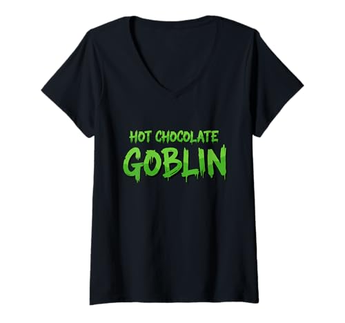 Womens Hot Chocolate Goblin Holiday Season Cocoa Sipping Drink V-Neck T-Shirt