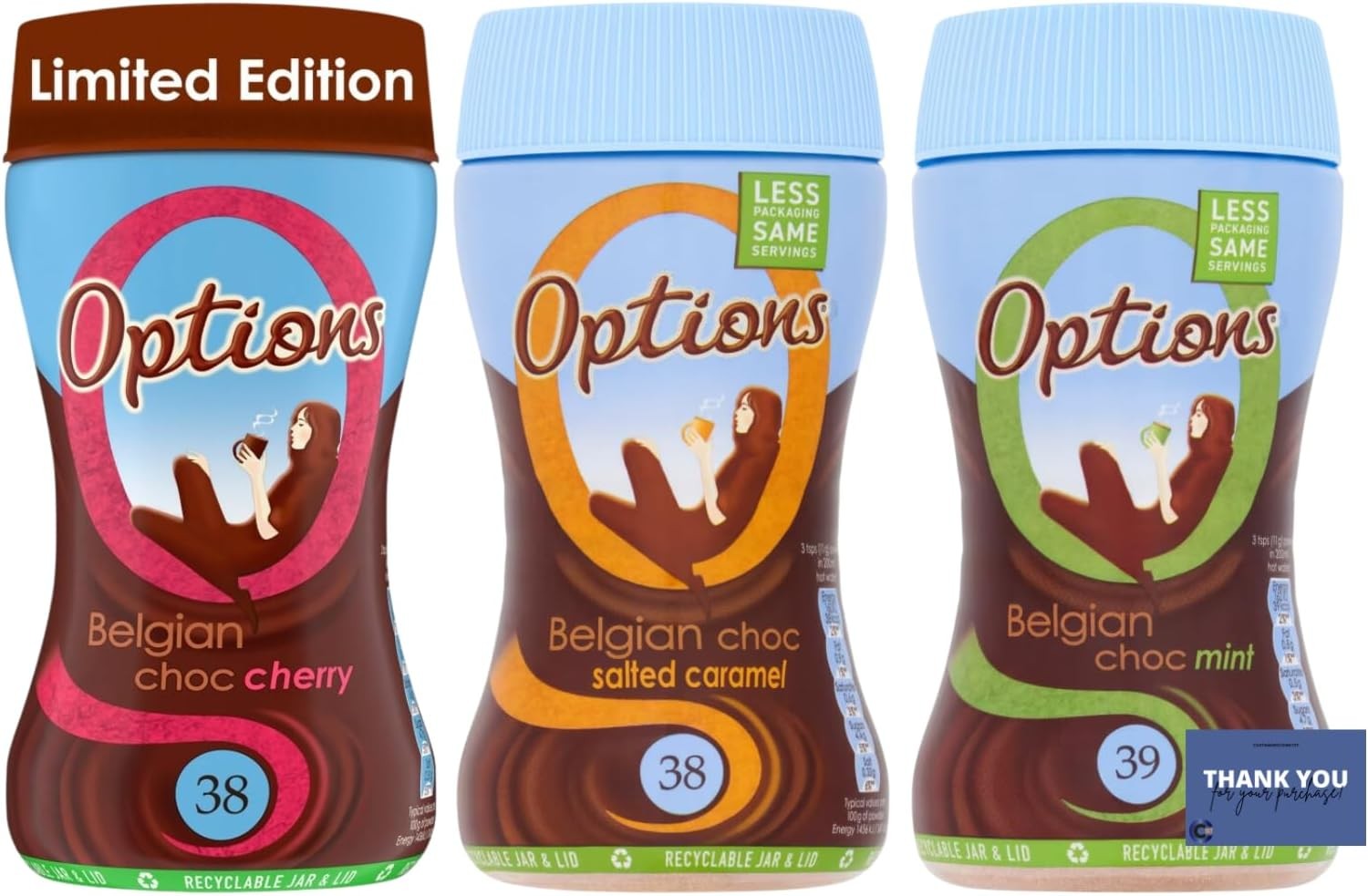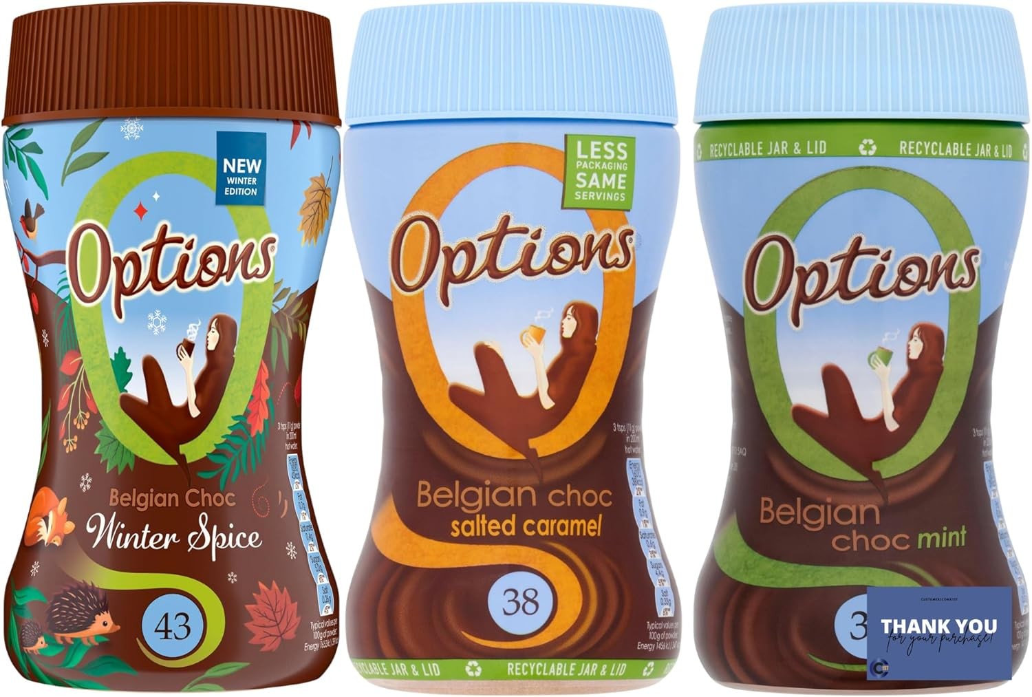 Options Hot Chocolate Bundle - White Choc Berry, Belgian Choc Mint & Belgian Ch