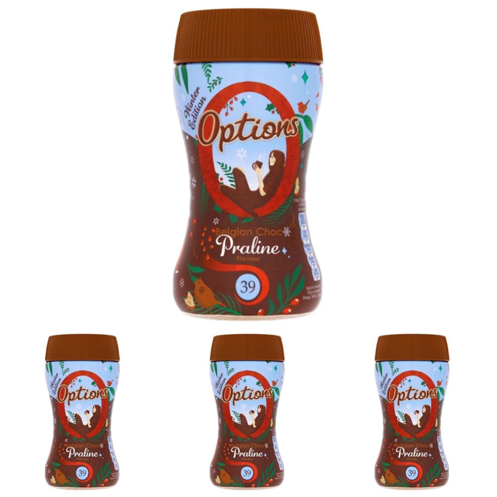 Options Hot Chocolate Winter Edition - Belgian Chocolate & Praline Flavour Hot Chocolate - Limited Edition Christmas Flavour - Perfect Low Calorie Festive Treat - 220g Jar (Pack of 4)