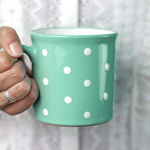 City to Cottage® Teal Blue and White | Polka Dot Spotty | Designer Handmade Hand Painted | Unique Ceramic Extra Large 17.5oz/500ml | Hot Chocolate Coffee Tea Mugs Cups with Handle | Gift