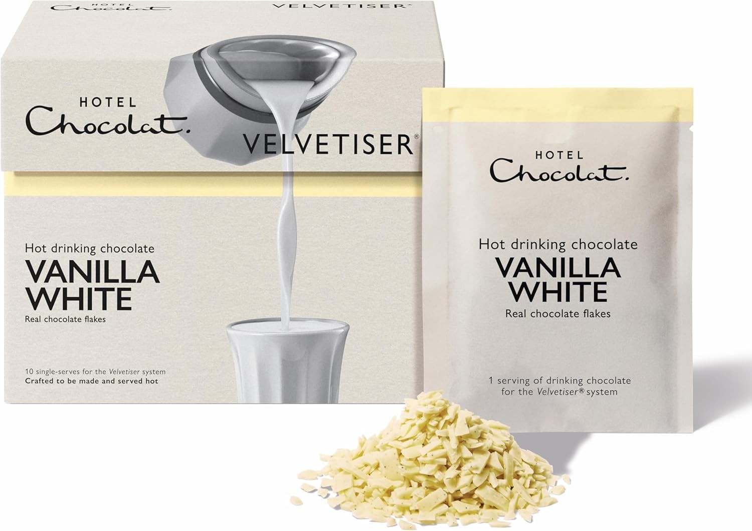 Hotel Chocolat Vanilla-White Hot Chocolate Sachets - Luxury Chocolate Flakes -