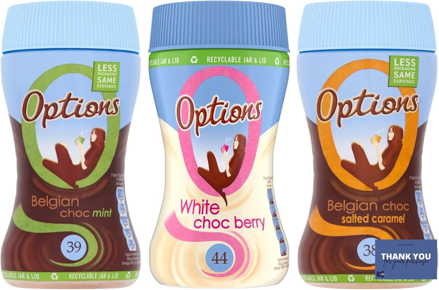 Options Hot Chocolate Bundle - White Choc Berry, Belgian Choc Mint & Belgian Ch