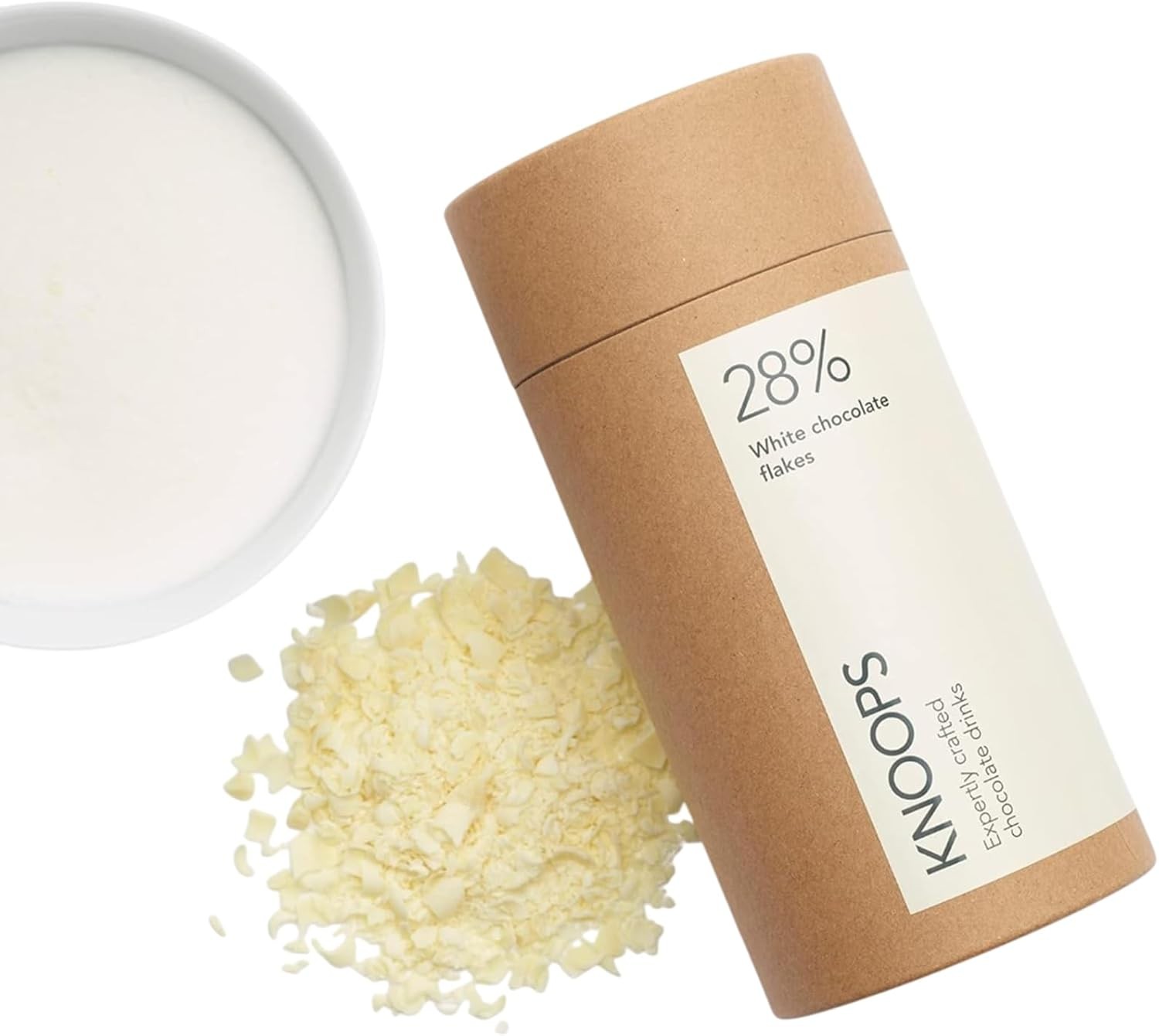 Knoops White Hot Chocolate Flakes, 28% White Luxury Hot Drinking Chocolate, Del
