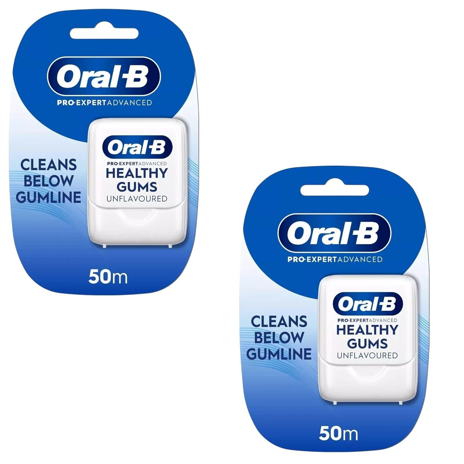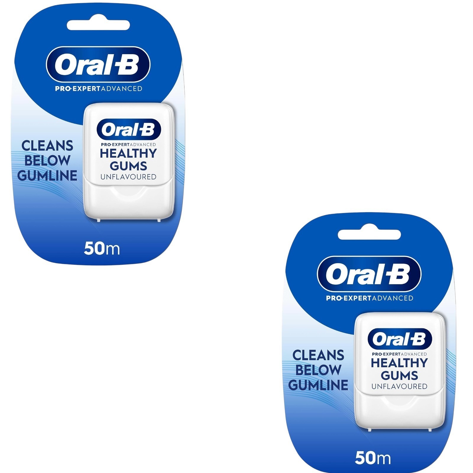 Oral-B Pro-Expert Advanced Healthy Gums Unflavoured Waxed Floss Tape - 50m X 2