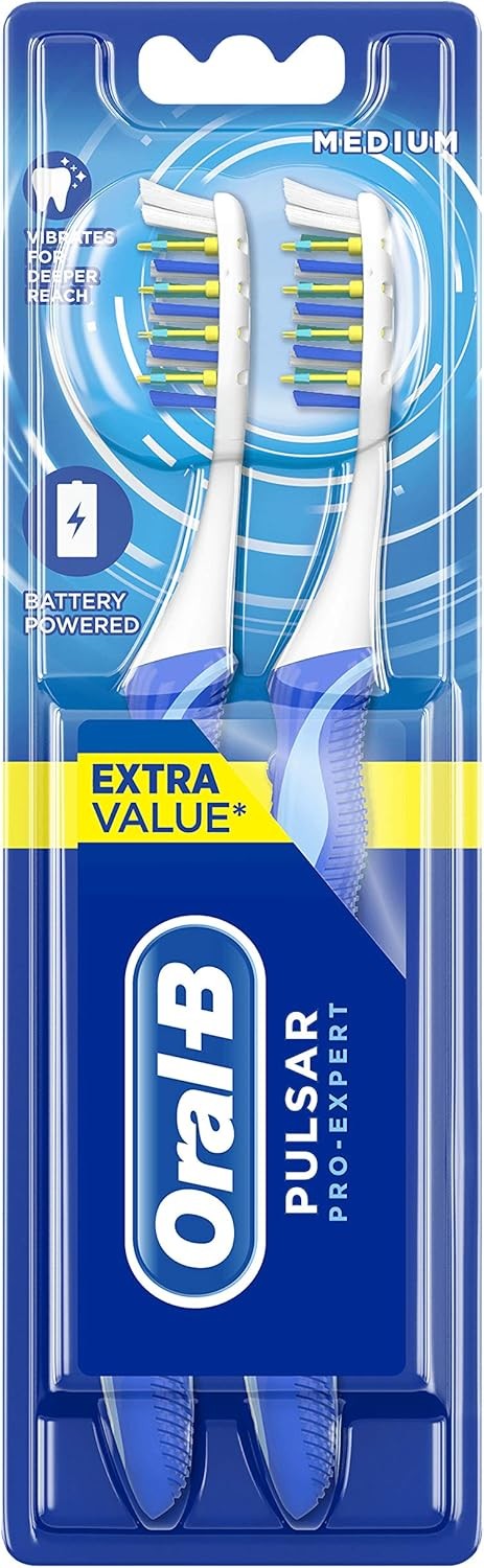 Oral-B Pulsar Pro Expert Battery Powered Toothbrush x 2 MEDIUM Bristles FREEPOST