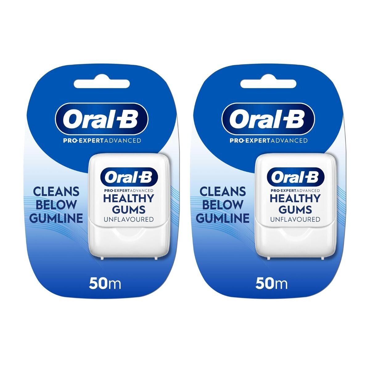 Oral-B Pro-Expert Advanced Healthy Gums Unflavoured Waxed Floss Tape 50m x 2