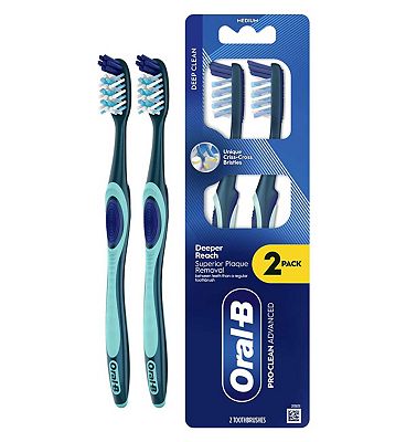 Oral-B Pro Cleane Advanced Manual Toothbrush Deep Cleaning & Plaque Removal Medium Bristles, 2