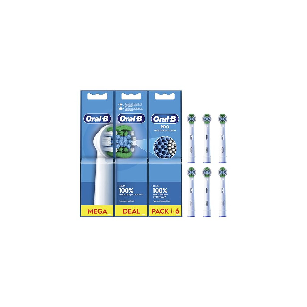 Oral-B Pro Precision Clean Electric Toothbrush Head, X-Shape and Angled Bristles for Deeper Pack of 6 Toothbrush Heads, Suitable for Mailbox, White