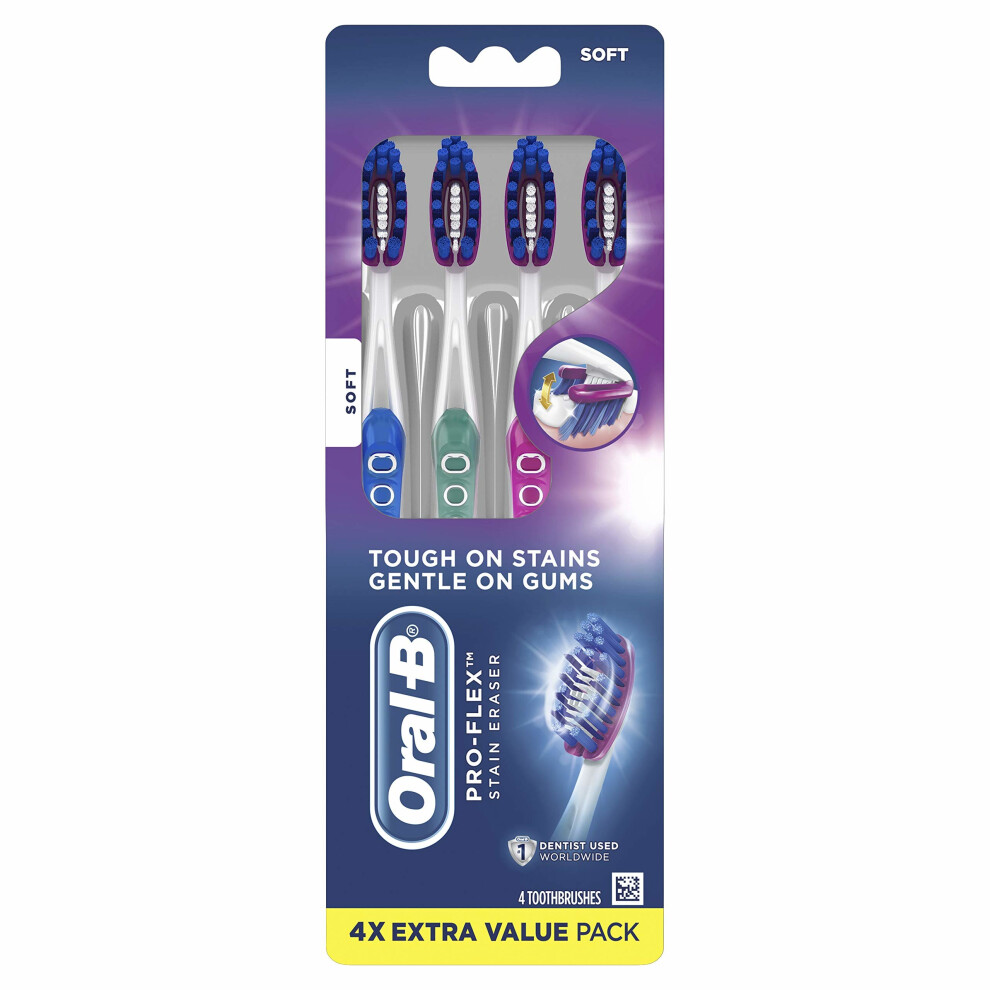 Oral-B 3D White Luxe Pro-Flex Manual Soft Toothbrush, 4 Count