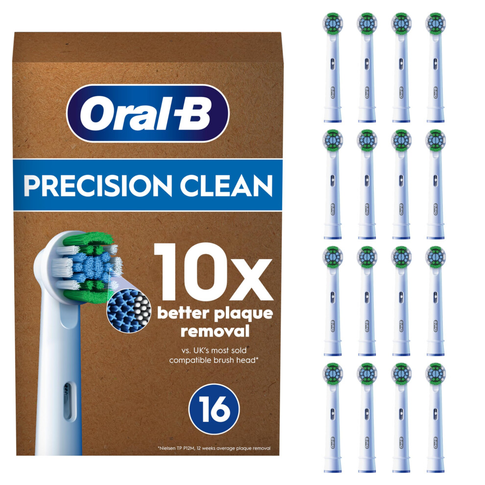 Oral-B Pro Precision Clean Electric Toothbrush Head, X-Shape And Angled Bristles for Deeper Pack of 16 Toothbrush Heads, Suitable For Mailbox, White