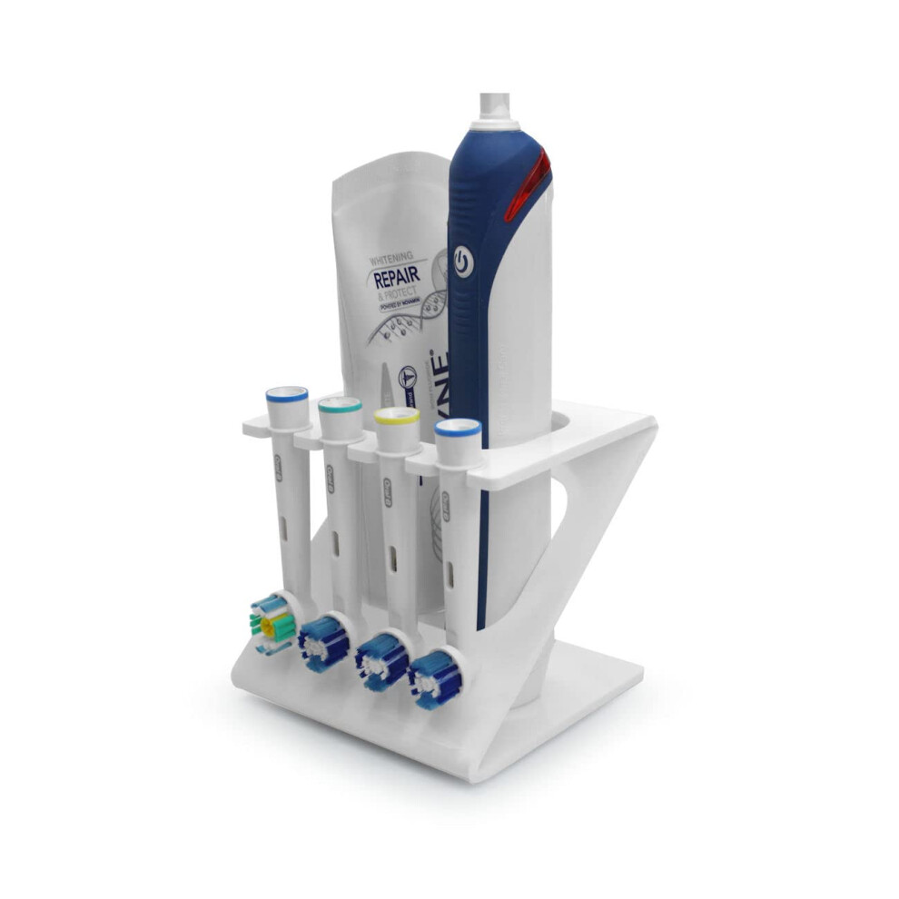 Electric Toothbrush & Toothpaste Caddy Toothbrush Head Holder Stand Compatible for Oral B (4 Heads + 1 Toothbrush) (White)