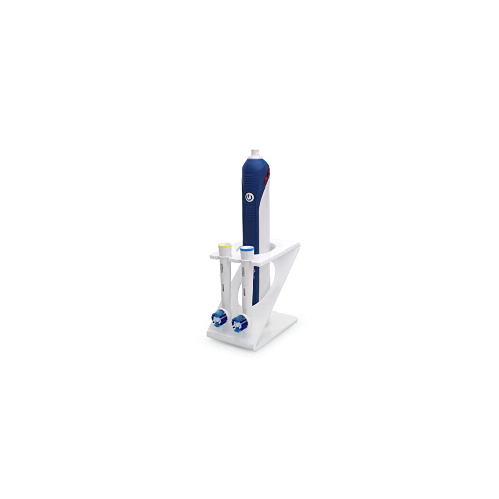 Electric Toothbrush Caddy Toothbrush Head Holder Stand Compatible for Oral B (2 Heads + 1 Toothbrush) (White)