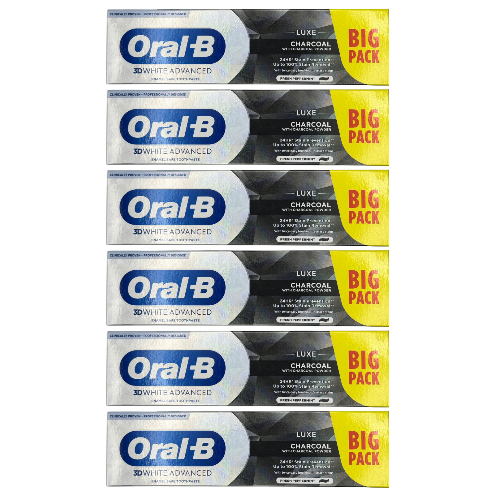 Oral-B 3D White Advanced Luxe Charcoal Toothpaste 100ml - 6 Pack