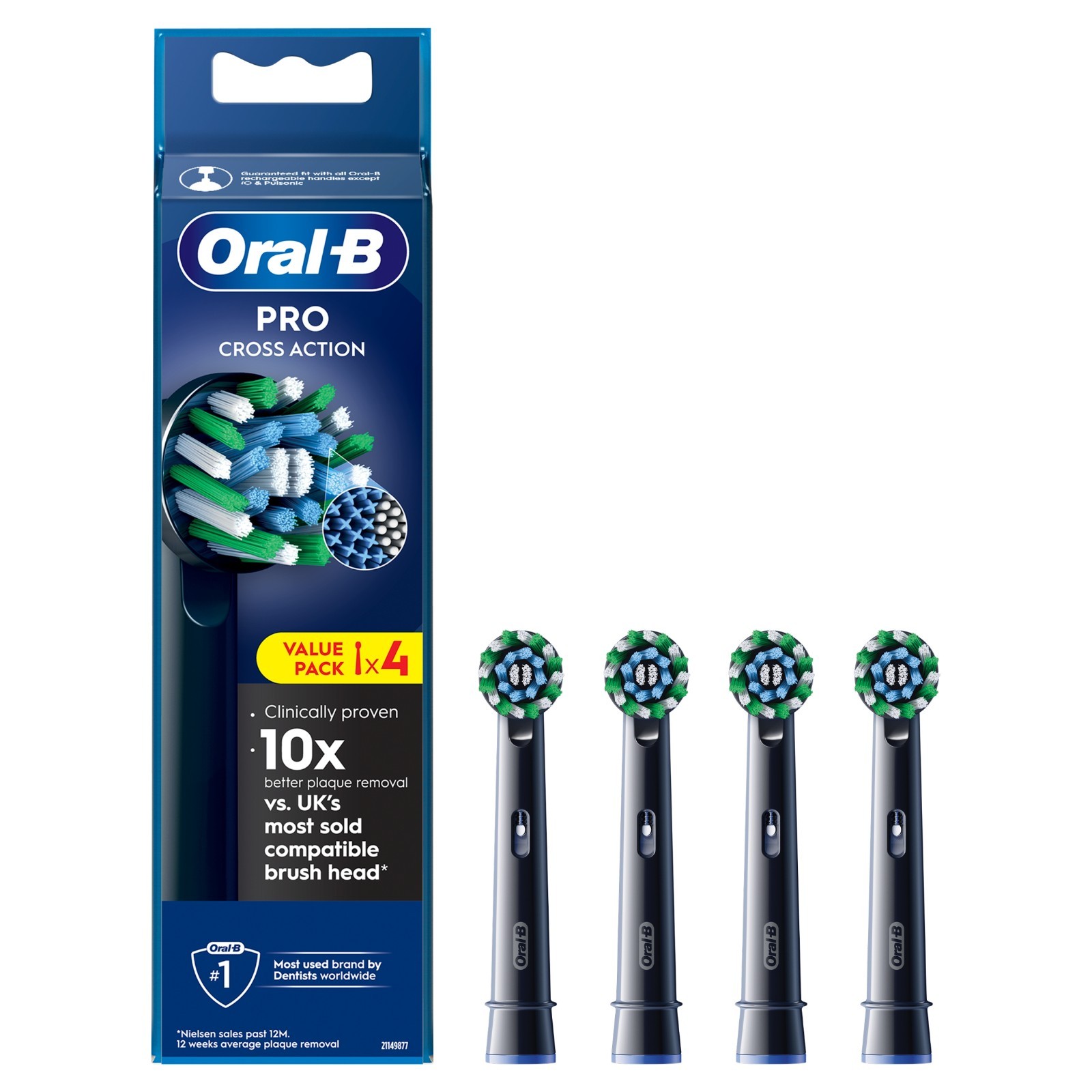 Oral-B Pro Cross Action Electric Toothbrush Heads - 4 Pack (EB50RX) â Black Pro, X-Shaped Bristles, Removes Up to 100% More Plaque