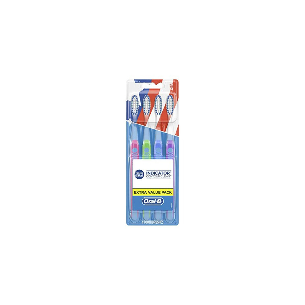Oral-b Indicator Contour Clean Toothbrushes, Extra Value Pack, Medium, 4 Count (Color May Vary)