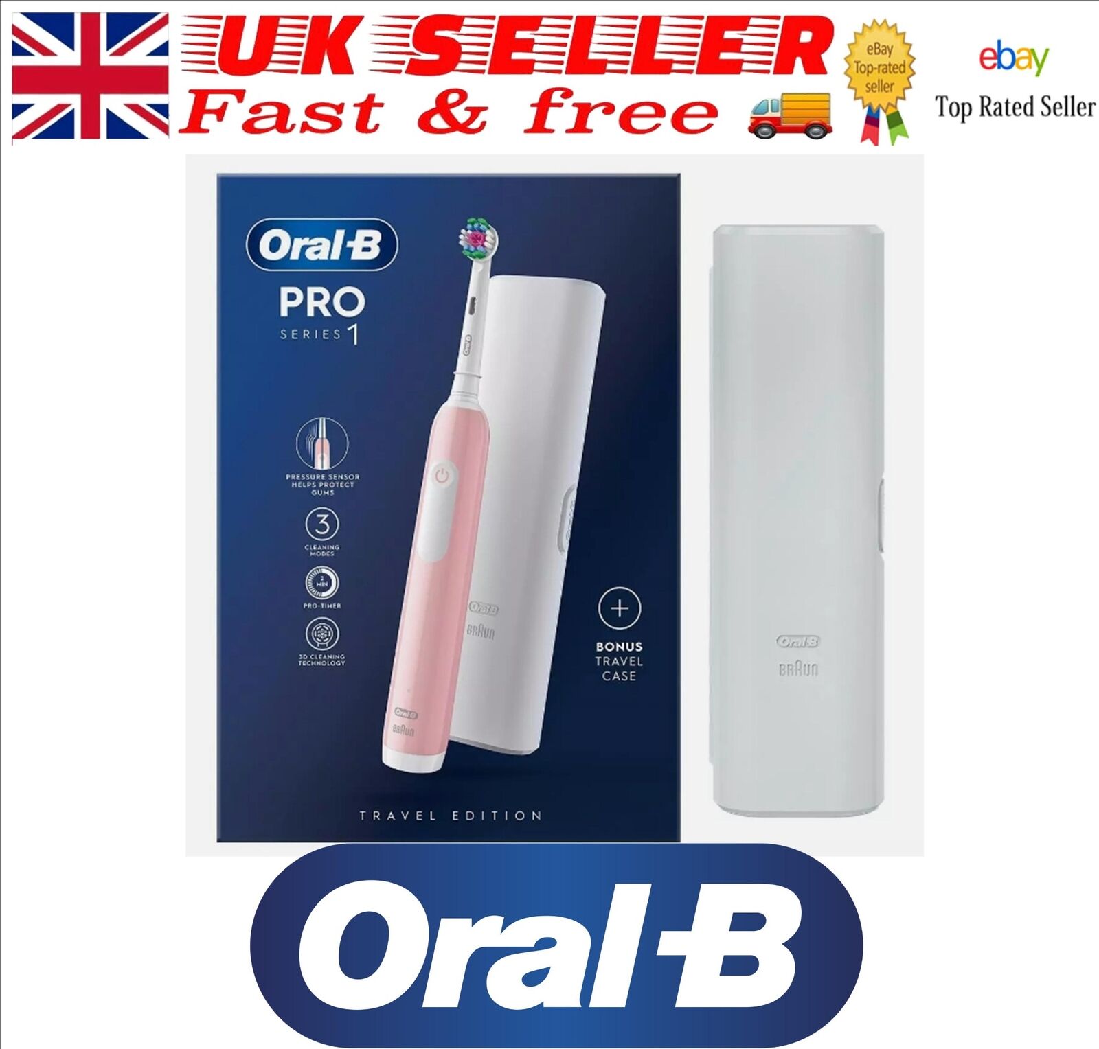 Oral-B Pro 1 Cross Action Black & Travel Case- Pink
