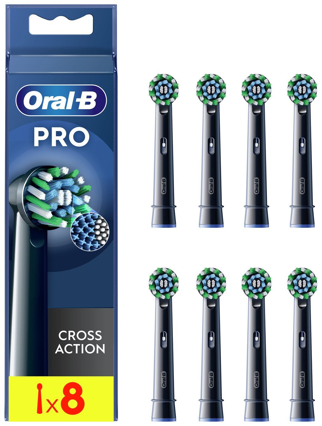Oral-B Pro Cross Action Electric Toothbrush Head, Oral B Electric Toothbrush Heads, X-Shape and Angled Bristles for Deeper Plaque Removal, Pack of 8 Replacement Toothbrush Heads, Black