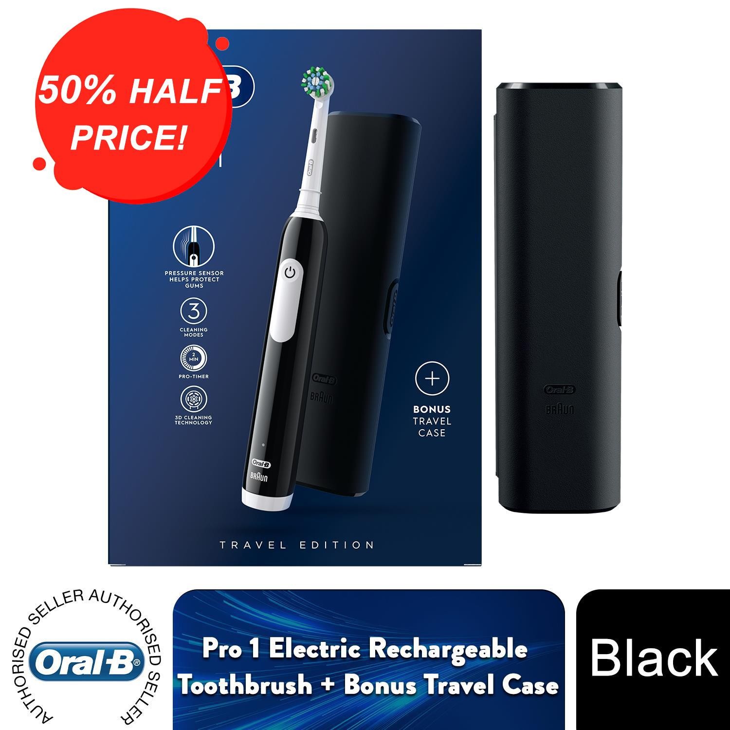 Oral-B Pro 1 Cross Action Black & Travel Case- Black