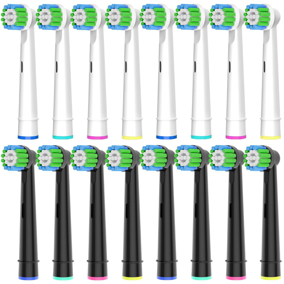Oral B Compatible Toothbrush Heads, 16pcs Betterchoi Replacement Brush Heads for Most Braun Oral B Electric Toothbrushes, 8pcs White and 8pcs Black.